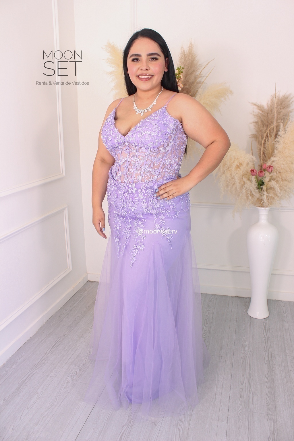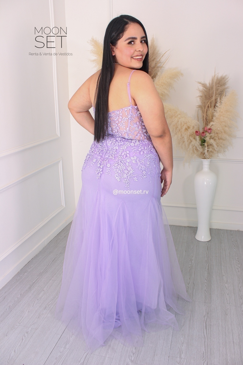 Vestido en corte sirena, hecho de tul con flores 3D y bordadas, piedras, y transparencias. Con copas y varillas incluidas.