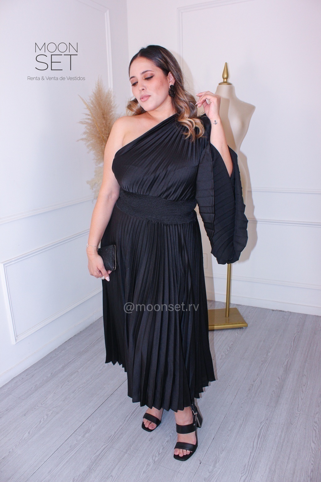 Vestido Midi plisado con resorte en cintura lo cual permite que se adapte a muchas medidas, tallas y proporciones.
