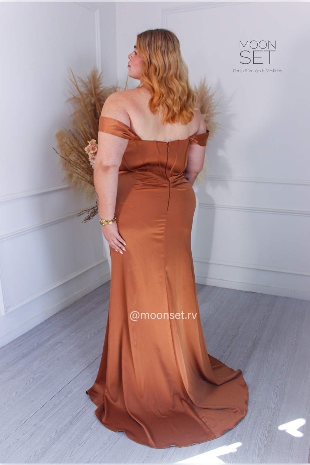 Este vestido horma precioso ya que tiene drapeado en el abdomen, es tipo corset con varillas y copas incluidas. El tirante tiene opcion de bajarse y hacerse OFF-SHOULDER si buscas cubrir tu brazo.